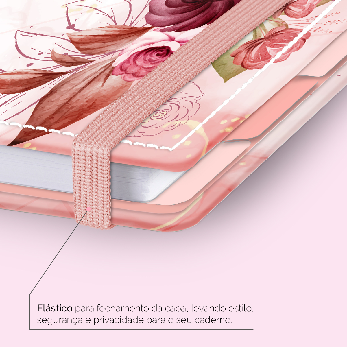 Elástico para fechamento da capa do caderno.