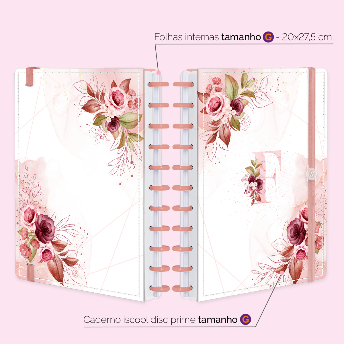 Iscool Disc Prime Monograma Floral Branco E Rosa Letra F