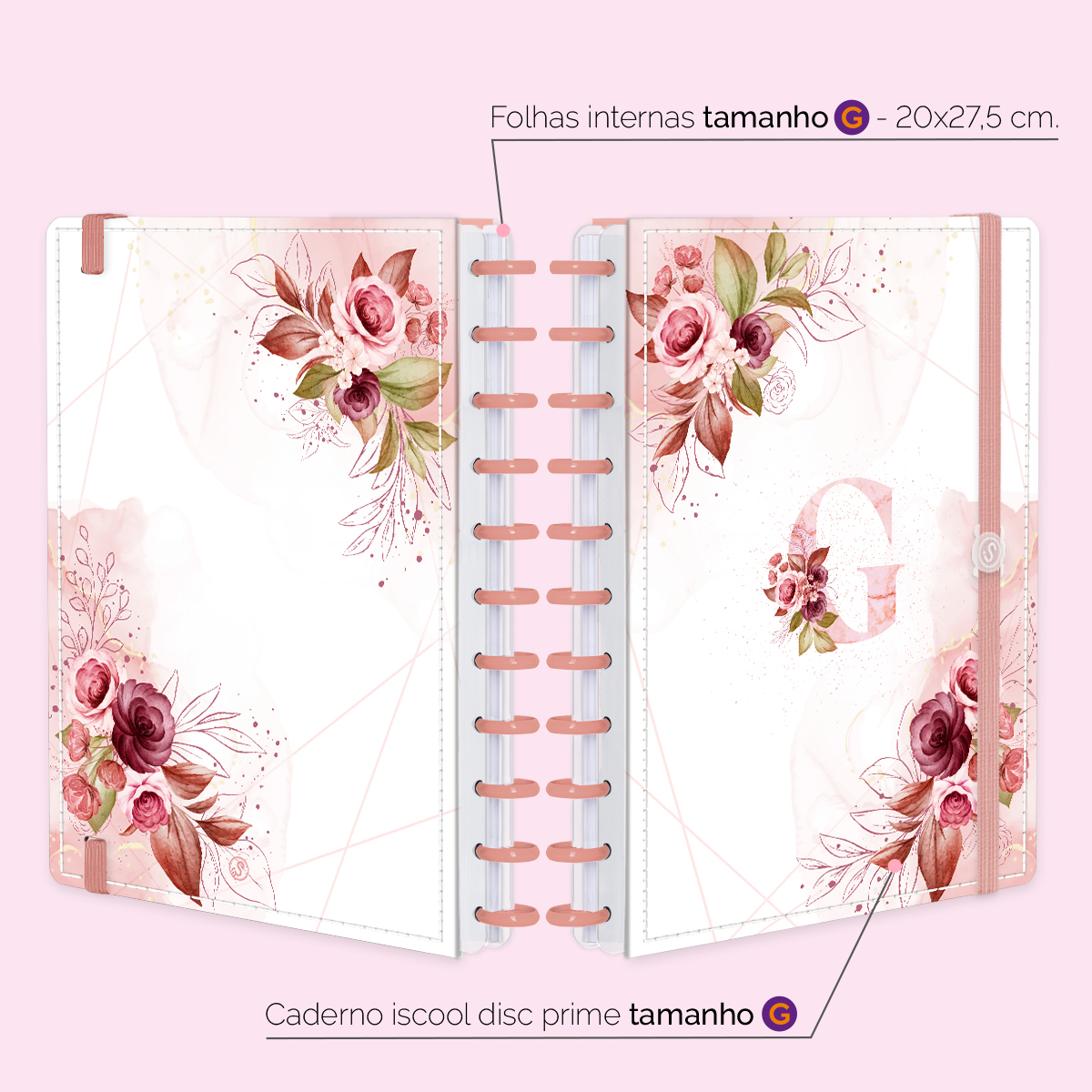 Iscool Disc Prime Monograma Floral Branco E Rosa Letra G