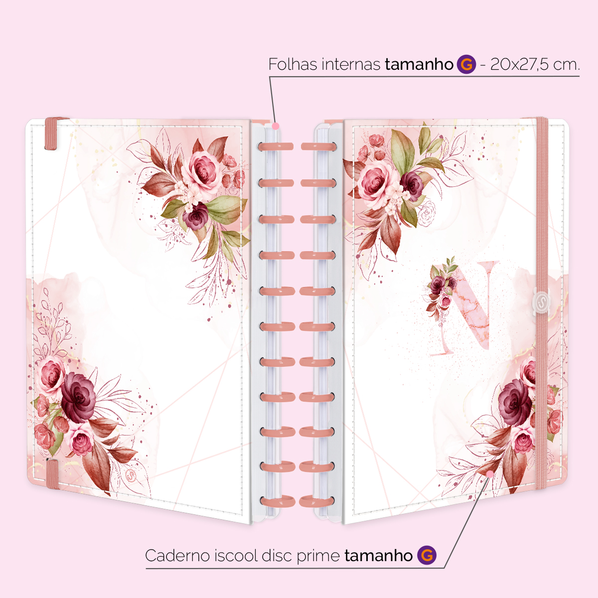 Iscool Disc Prime Monograma Floral Branco E Rosa Letra N
