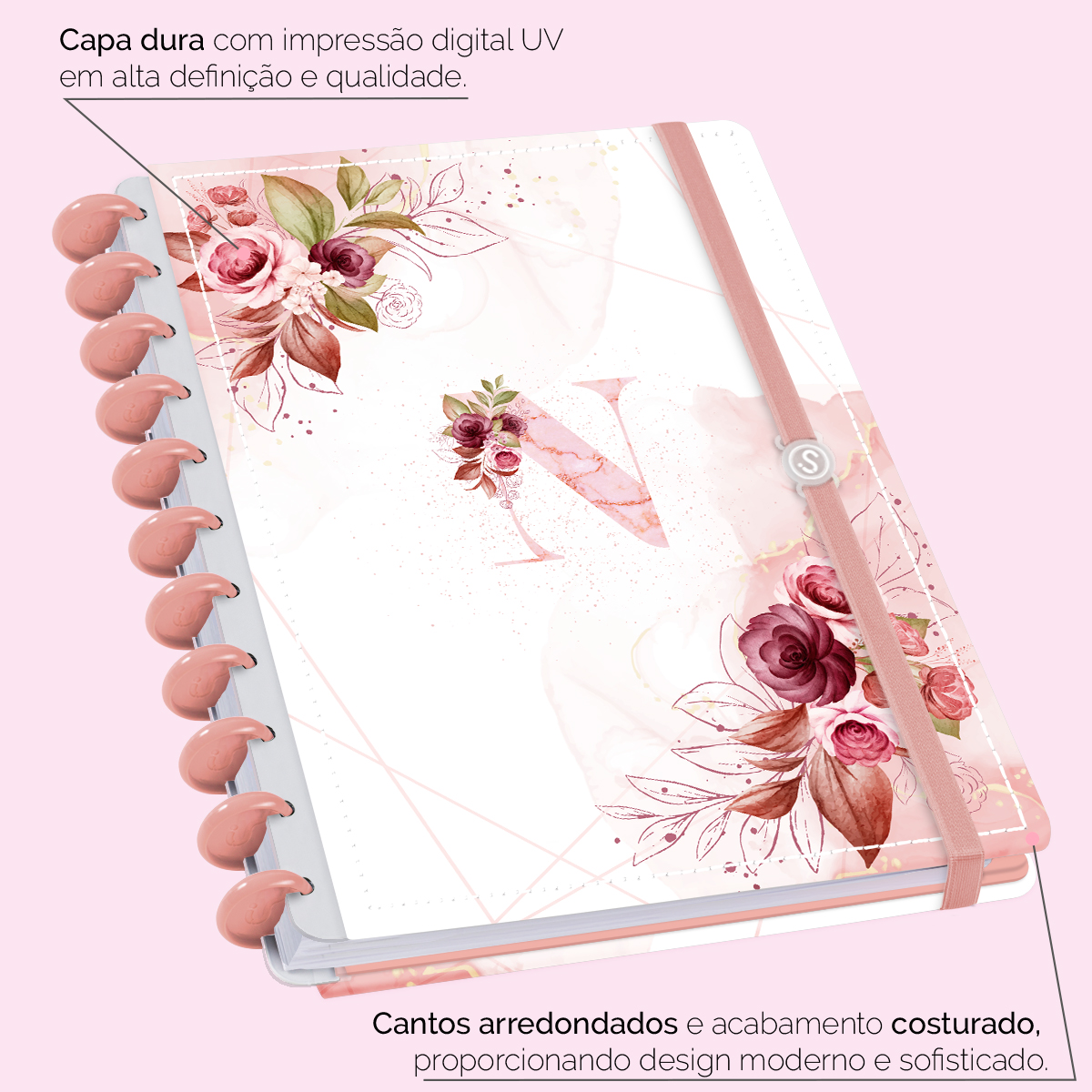 Um caderno totalmente customizável, no qual os elementos são reposicionáveis. Você pode montá-lo como preferir, deixando rolar solta toda sua criatividade.