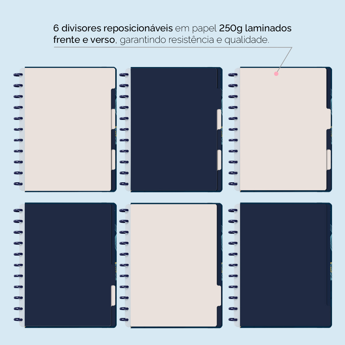 A capa é dura com impressão digital de alta definição, acompanha 6 lindas divisórias que você pode colocar em qualquer local do caderno, funcionando como o guia perfeito para sua organização.