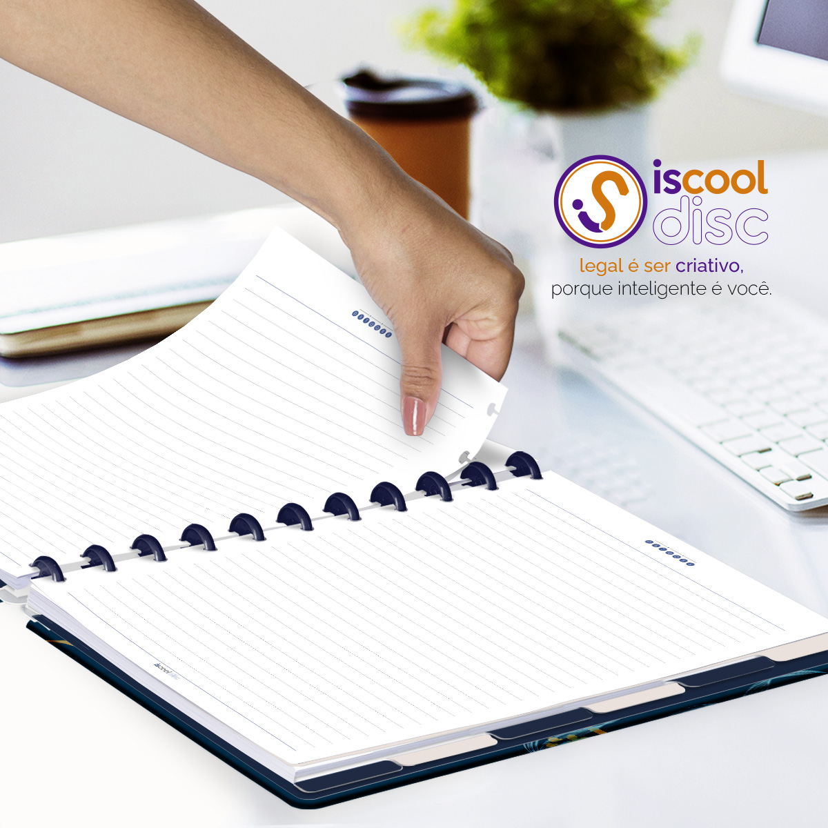 Com furos no formato de “cogumelo”, você poderá dar um “up” em seu caderno com nossos refis, além de ser compatível com outros fabricantes de cadernos de discos.
