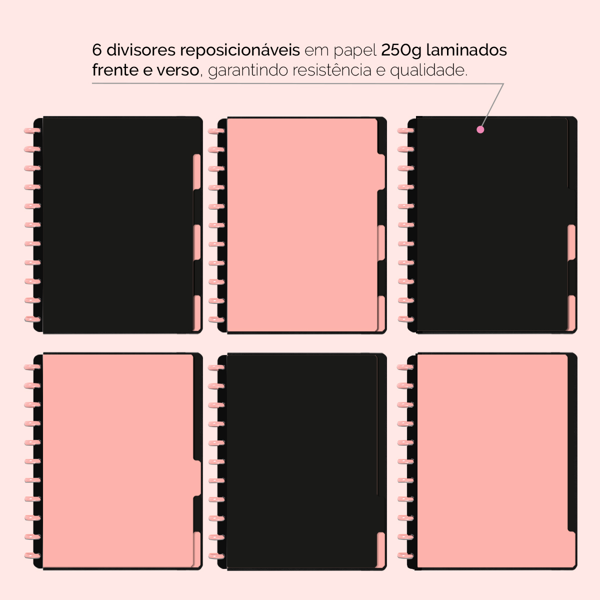 A capa é dura com impressão digital de alta definição, acompanha 6 lindas divisórias que você pode colocar em qualquer local do caderno, funcionando como o guia perfeito para sua organização.