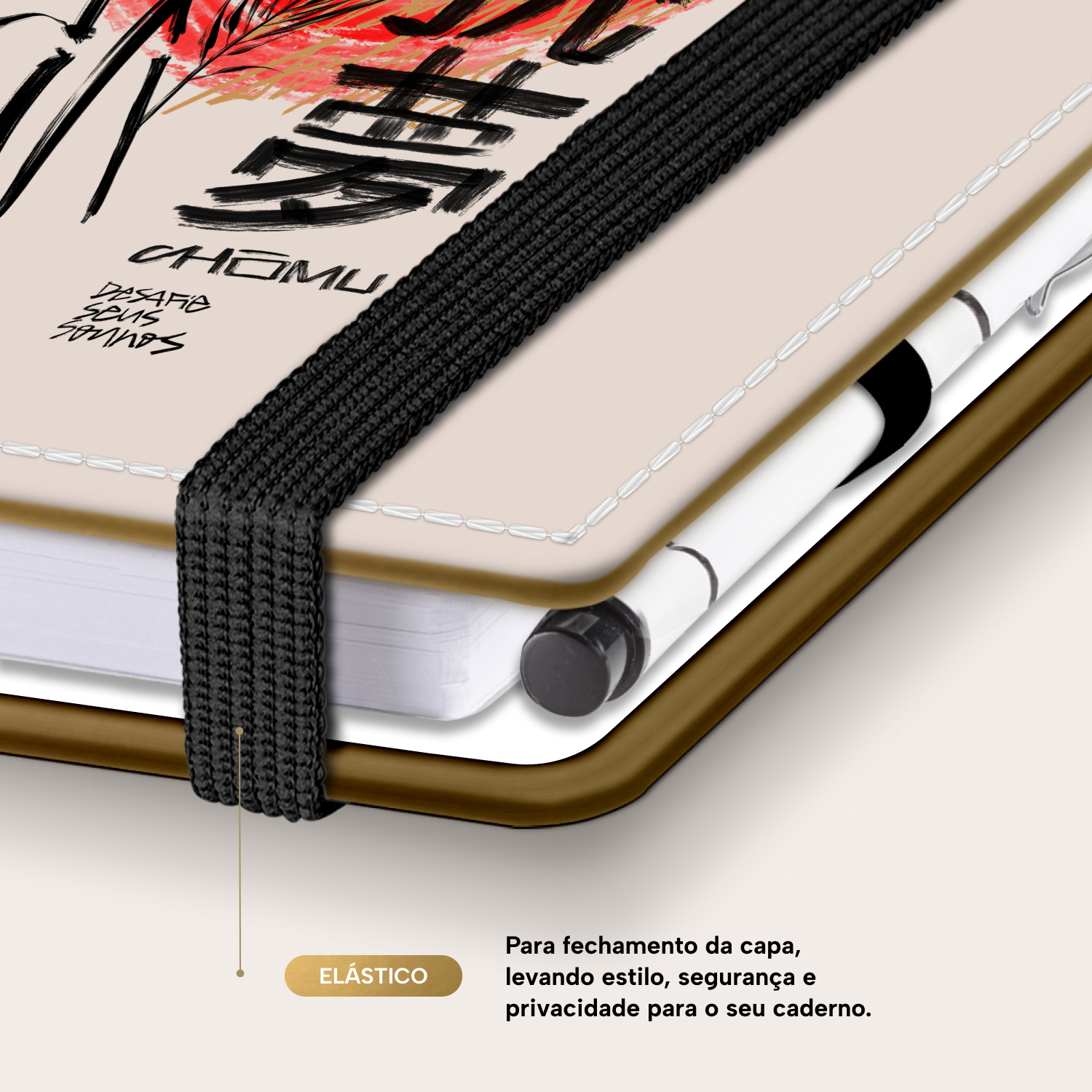 O miolo conta com 60 folhas pautadas decoradas em papel sulfite 90g (aquele papel mais “grossinho”) para que você use e abuse das suas canetas especiais, e 20 folhas em branco, ideais para explorar seu lado mais criativo ou até imprimir nelas.