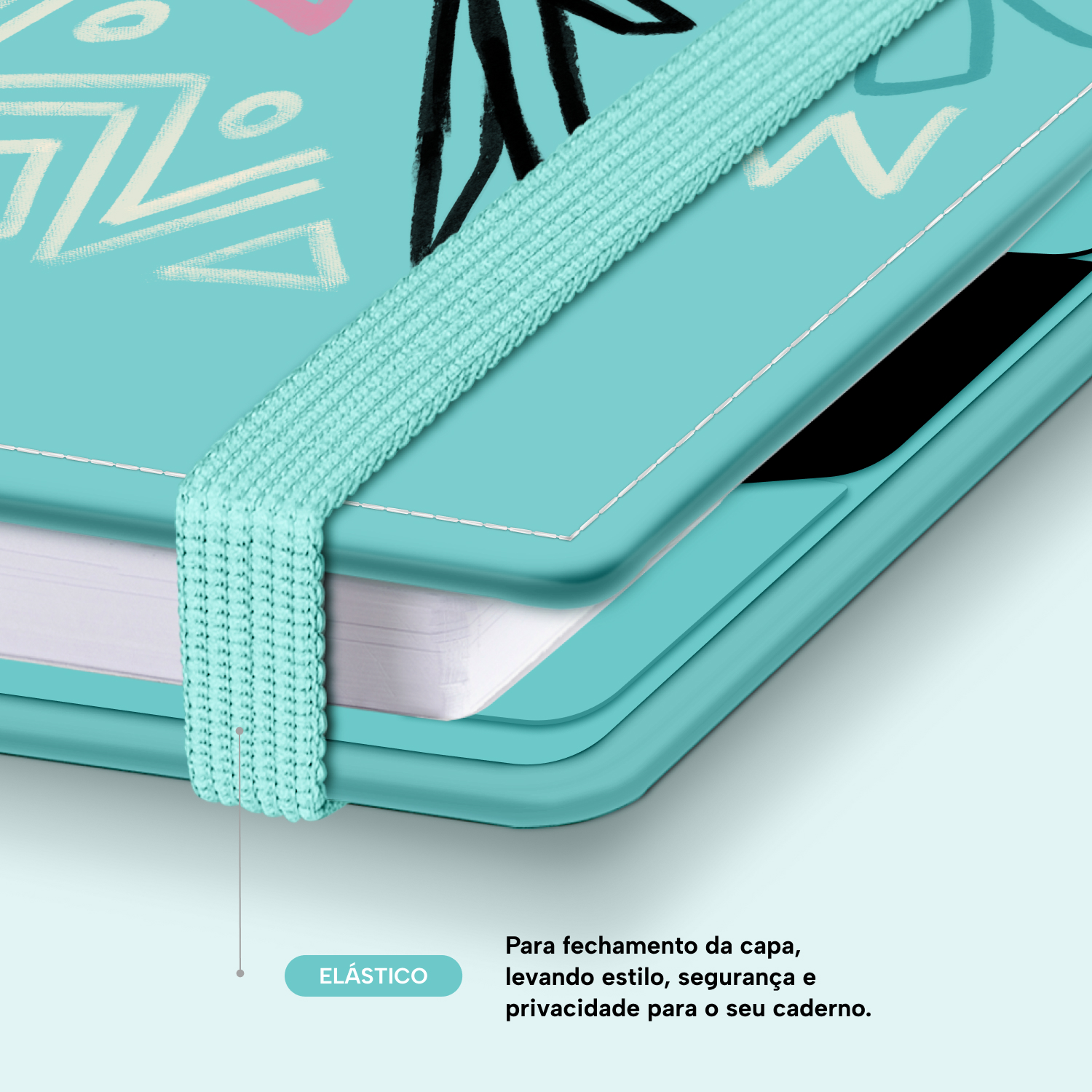 O miolo conta com 60 folhas pautadas decoradas em papel sulfite 90g (aquele papel mais “grossinho”) para que você use e abuse das suas canetas especiais, e 20 folhas em branco, ideais para explorar seu lado mais criativo ou até imprimir nelas.