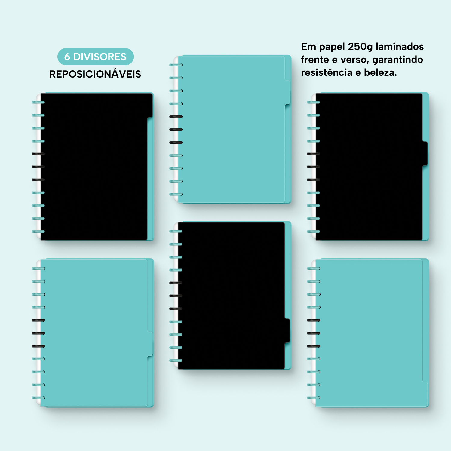 A capa é dura, com impressão digital de alta definição, e acompanha 6 lindas divisórias que você pode colocar em qualquer local do caderno, funcionando como o guia perfeito para sua organização.