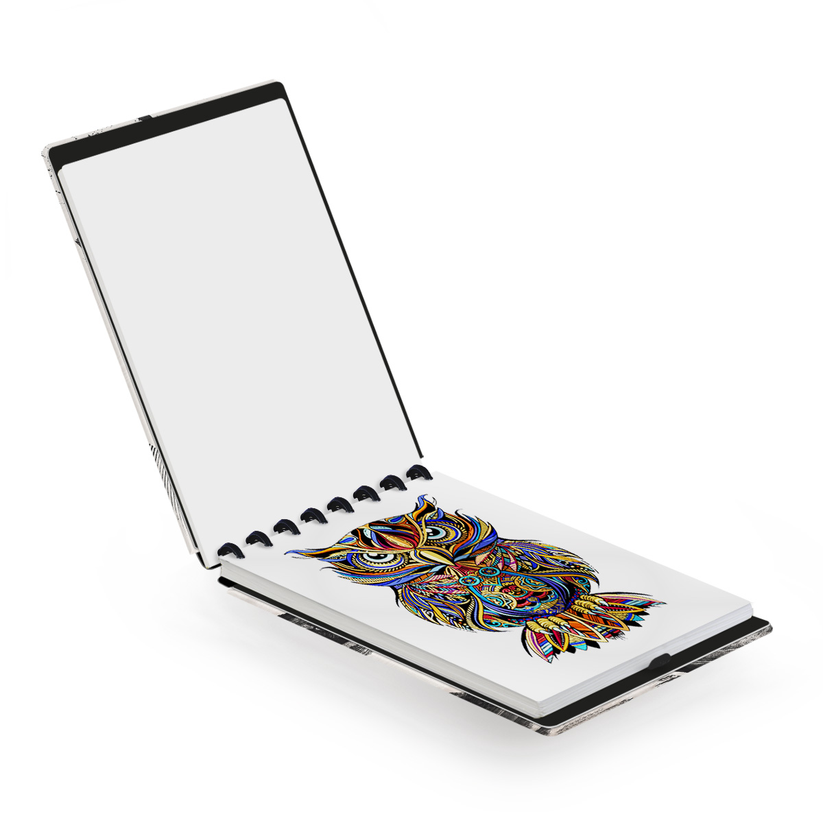 Um caderno totalmente customizável, no qual os elementos são reposicionáveis. Você pode montá-lo como preferir, indispensável para quem se diverte com desenhos ou necessita de fazer anotações livres e rascunhos de projetos no trabalho.
