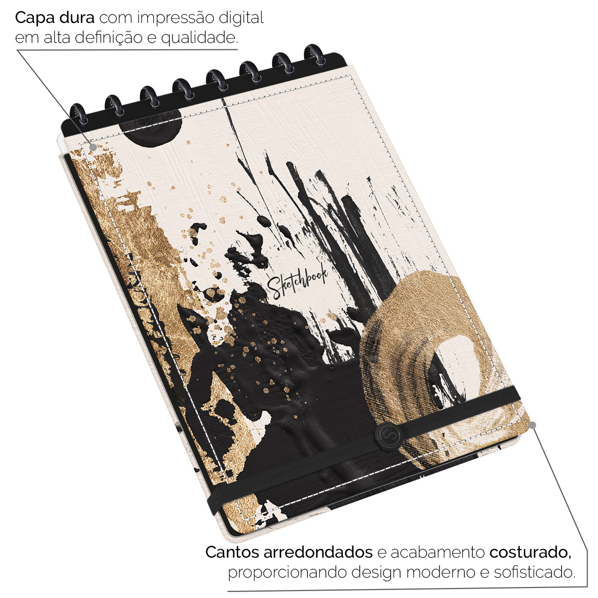 A capa dura do Sketchbook é revestida com laminação BOPP, dando assim um toque sofisticado e um visual com estilo único. Ela é impressa com tecnologia digital UV de alta definição de imagens, onde os detalhes são reproduzidos com riqueza e vivacidade!