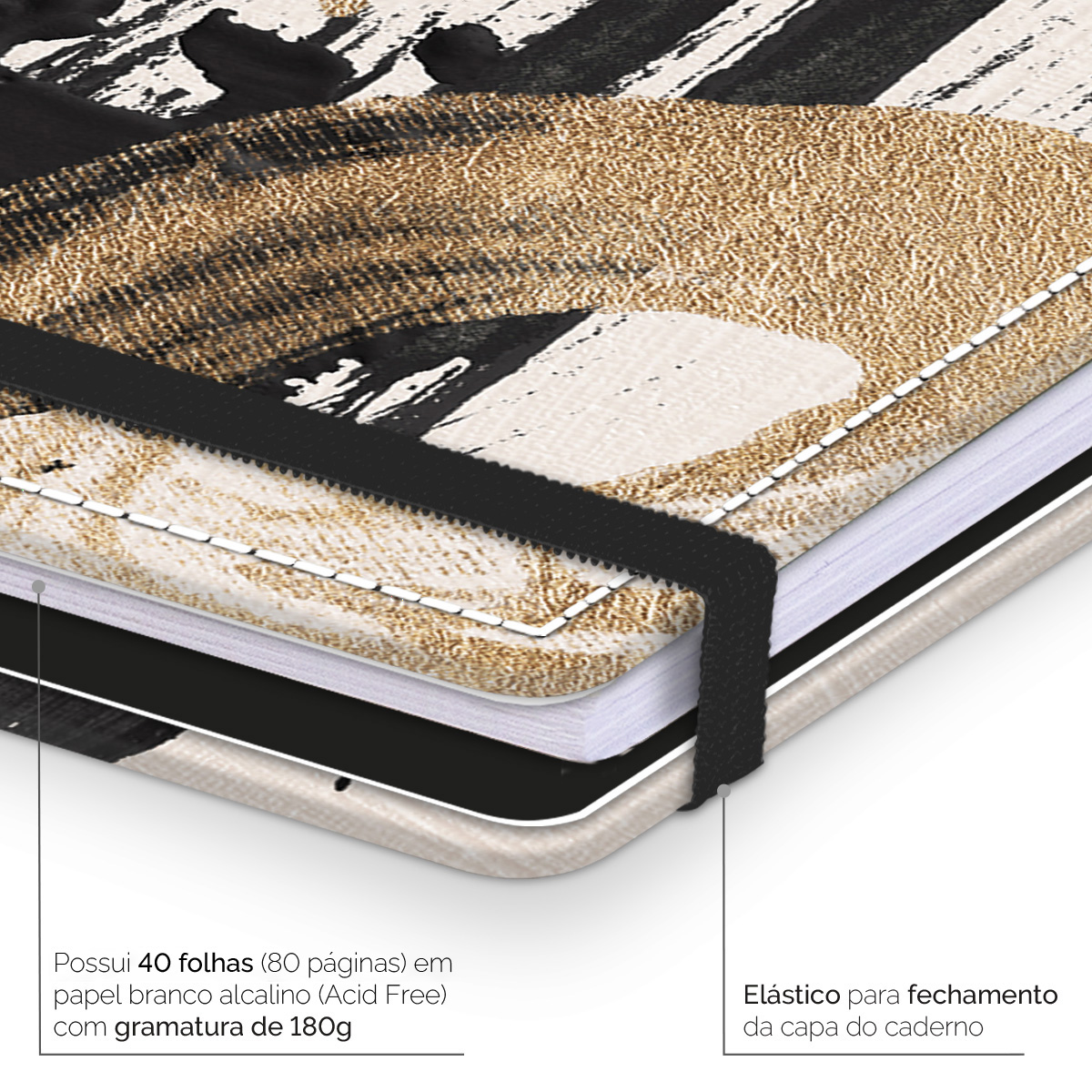 Páginas internas (miolo) em papel branco alcalino (acid free) 180g/m²