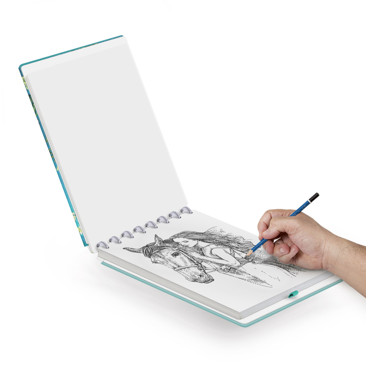 A capa dura do Sketchbook é revestida com laminação BOPP, dando assim um toque sofisticado e um visual com estilo único. Ela é impressa com tecnologia digital UV de alta definição de imagens, onde os detalhes são reproduzidos com riqueza e vivacidade!