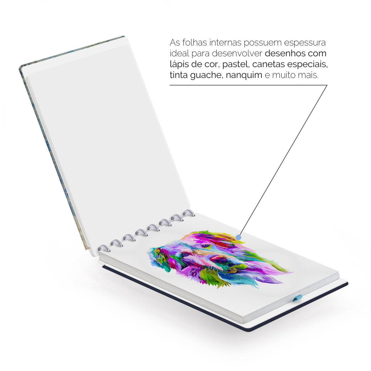 A capa dura do Sketchbook é revestida com laminação BOPP, dando assim um toque sofisticado e um visual com estilo único. Ela é impressa com tecnologia digital UV de alta definição de imagens, onde os detalhes são reproduzidos com riqueza e vivacidade!
