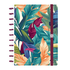 Encadernado com 11 discos G de 32mm em polímero de nylon e/ou policarbonato coloridos, fabricados no Brasil.