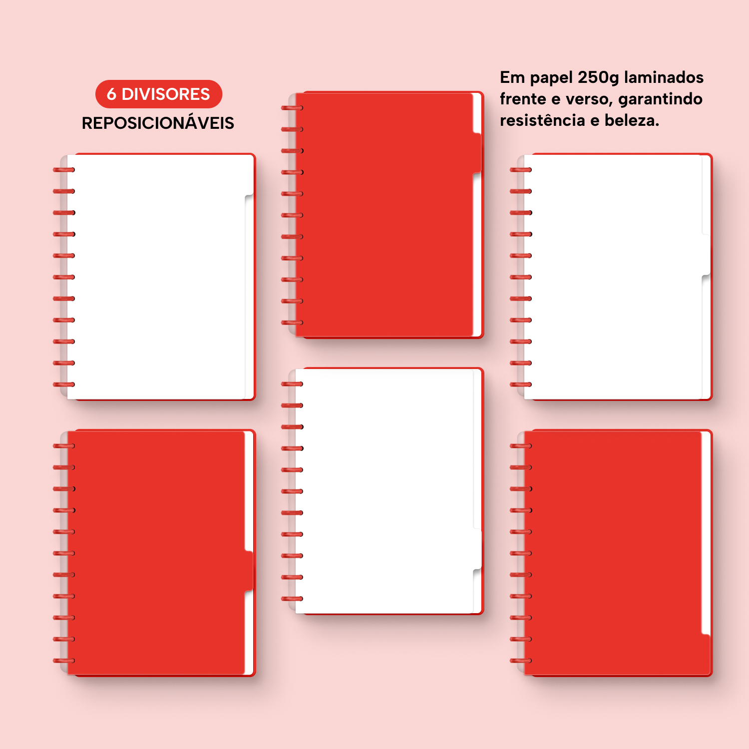 A capa é dura, com impressão digital de alta definição, e acompanha 6 lindas divisórias que você pode colocar em qualquer local do caderno, funcionando como o guia perfeito para sua organização.