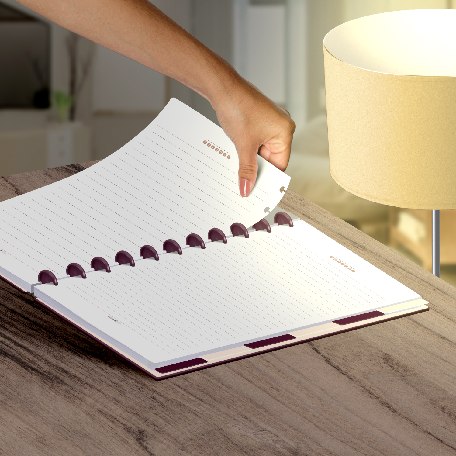 Com furos no formato de “cogumelo”, você poderá dar um “up” em seu caderno com nossos refis, além de ser compatível com outros fabricantes de cadernos de discos.