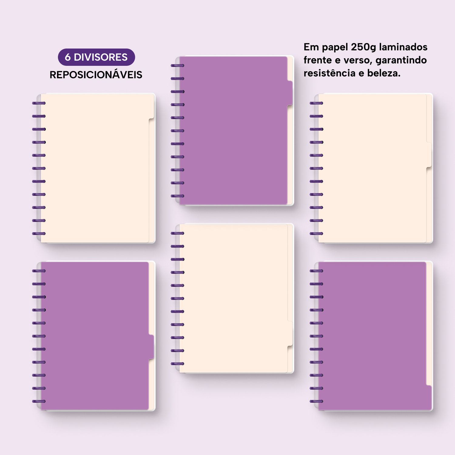 6 divisores laminados (frente e verso) em papel 250g.