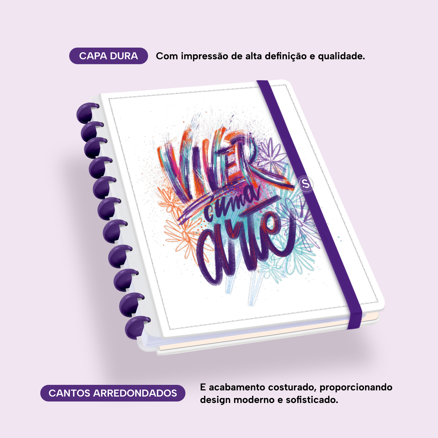A capa é dura, com impressão digital de alta definição, e acompanha 6 lindas divisórias que você pode colocar em qualquer local do caderno, funcionando como o guia perfeito para sua organização.