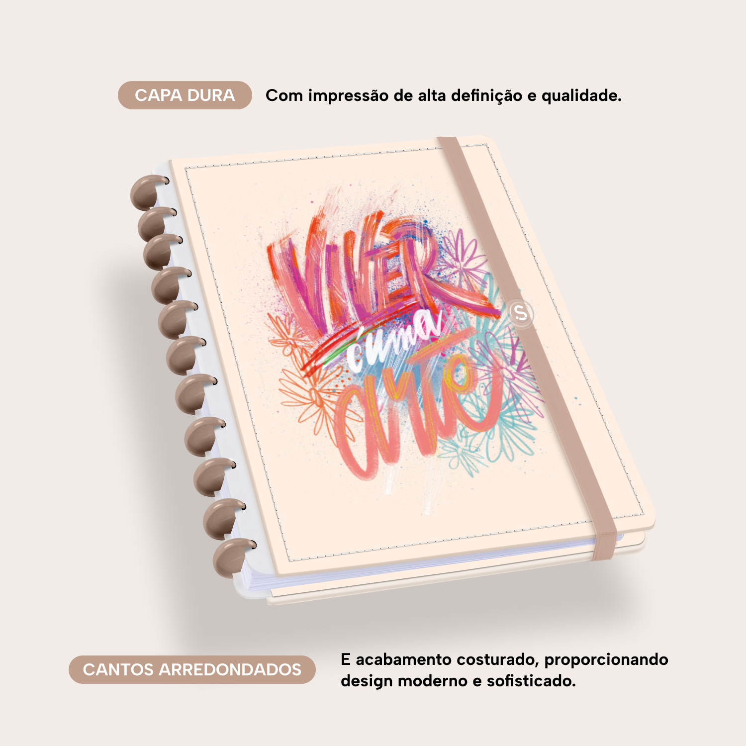 Um caderno totalmente customizável, no qual os elementos são reposicionáveis. Você pode montá-lo como preferir, deixando rolar solta toda a sua criatividade.