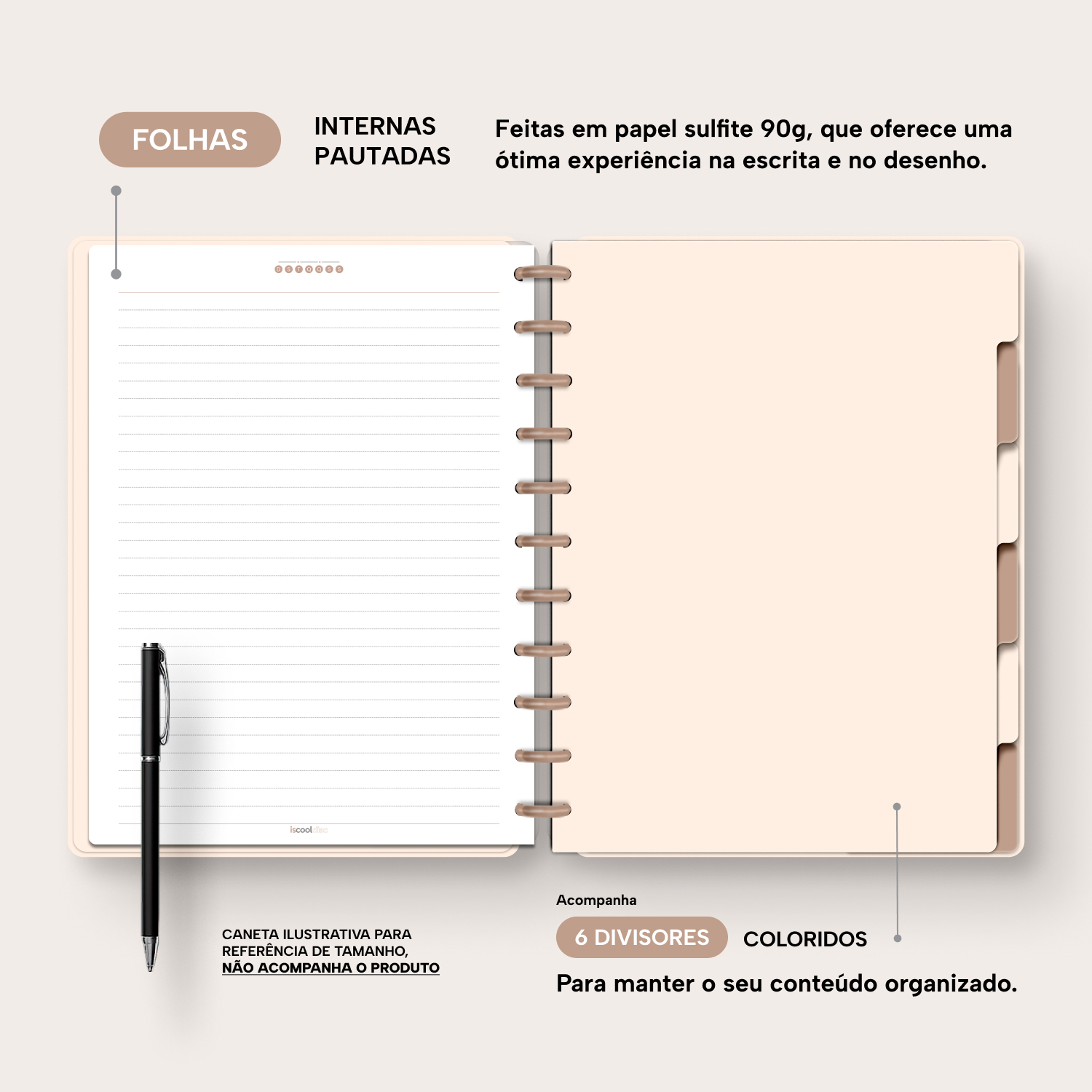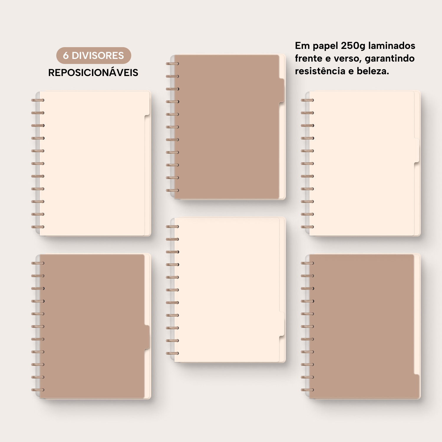 A capa é dura, com impressão digital de alta definição, e acompanha 6 lindas divisórias que você pode colocar em qualquer local do caderno, funcionando como o guia perfeito para sua organização.