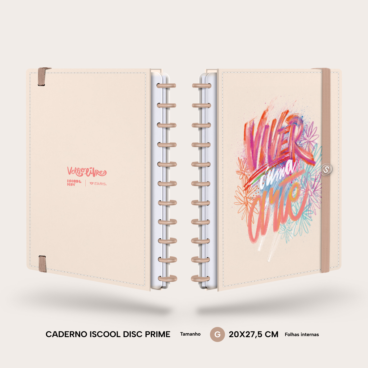 Além de tudo isso, o iscooldisc Prime conta com detalhes que fazem toda a diferença: elástico para fechamento da capa, muito mais estilo e privacidade para suas anotações; bolsa plástica para guardar seus rascunhos, referências, lembretes, documentos e uma cartela de adesivos incríveis, para que você possa personalizar seu caderno do seu jeitinho!