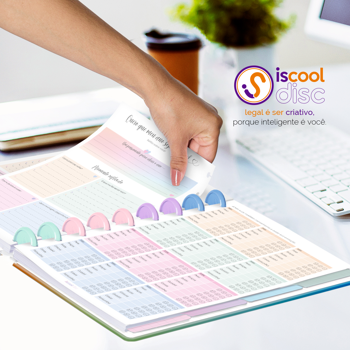 O ISCOOL DISC Planner Permanente foi criado especialmente para ajudar você a alcançar todas as suas metas e objetivos pessoais. É um planner totalmente customizável, no qual os elementos são reposicionáveis. Você pode montá-lo como preferir, deixando sua criatividade fluir livremente.