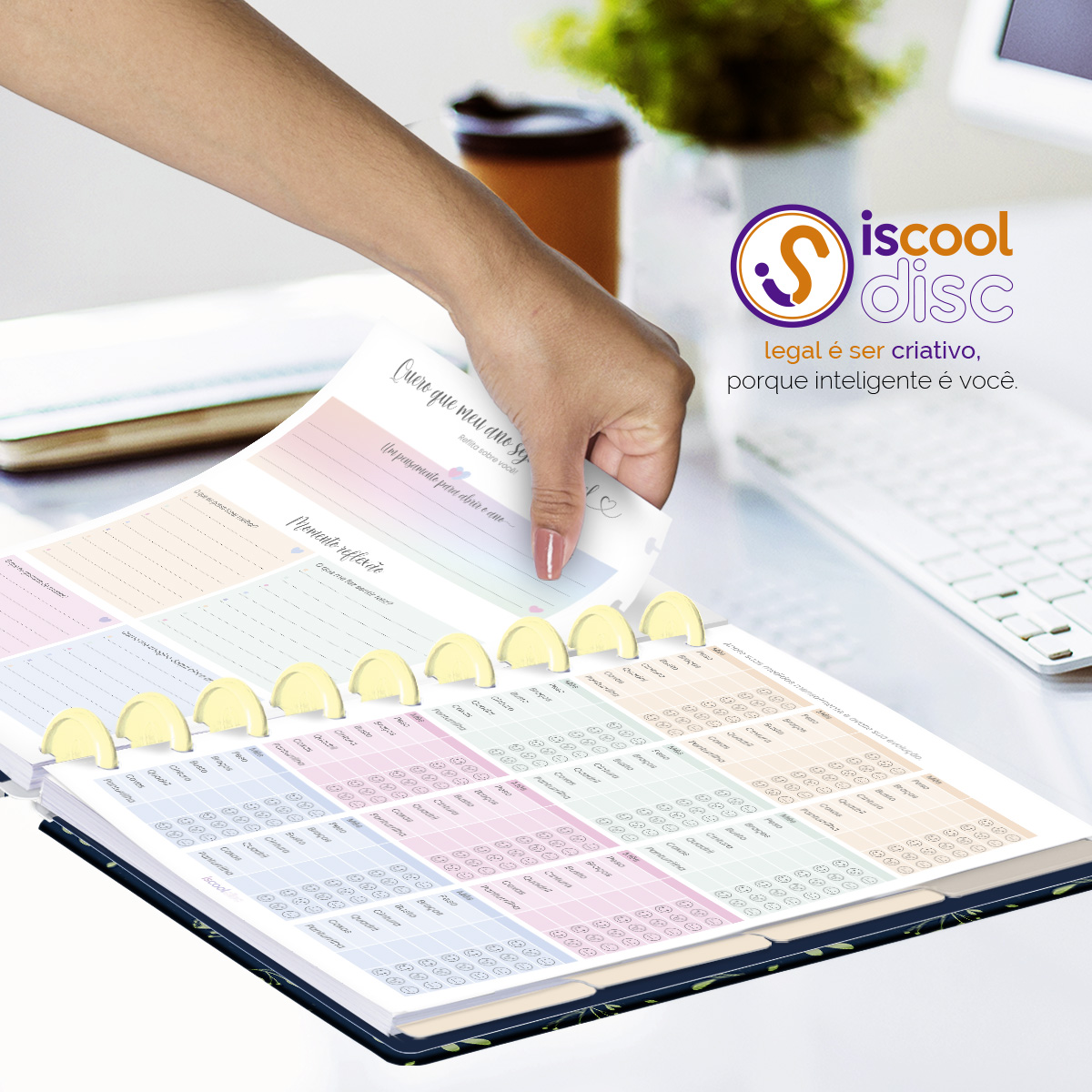 O ISCOOL DISC Planner Permanente foi criado especialmente para ajudar você a alcançar todas as suas metas e objetivos pessoais. É um planner totalmente customizável, no qual os elementos são reposicionáveis. Você pode montá-lo como preferir, deixando sua criatividade fluir livremente.