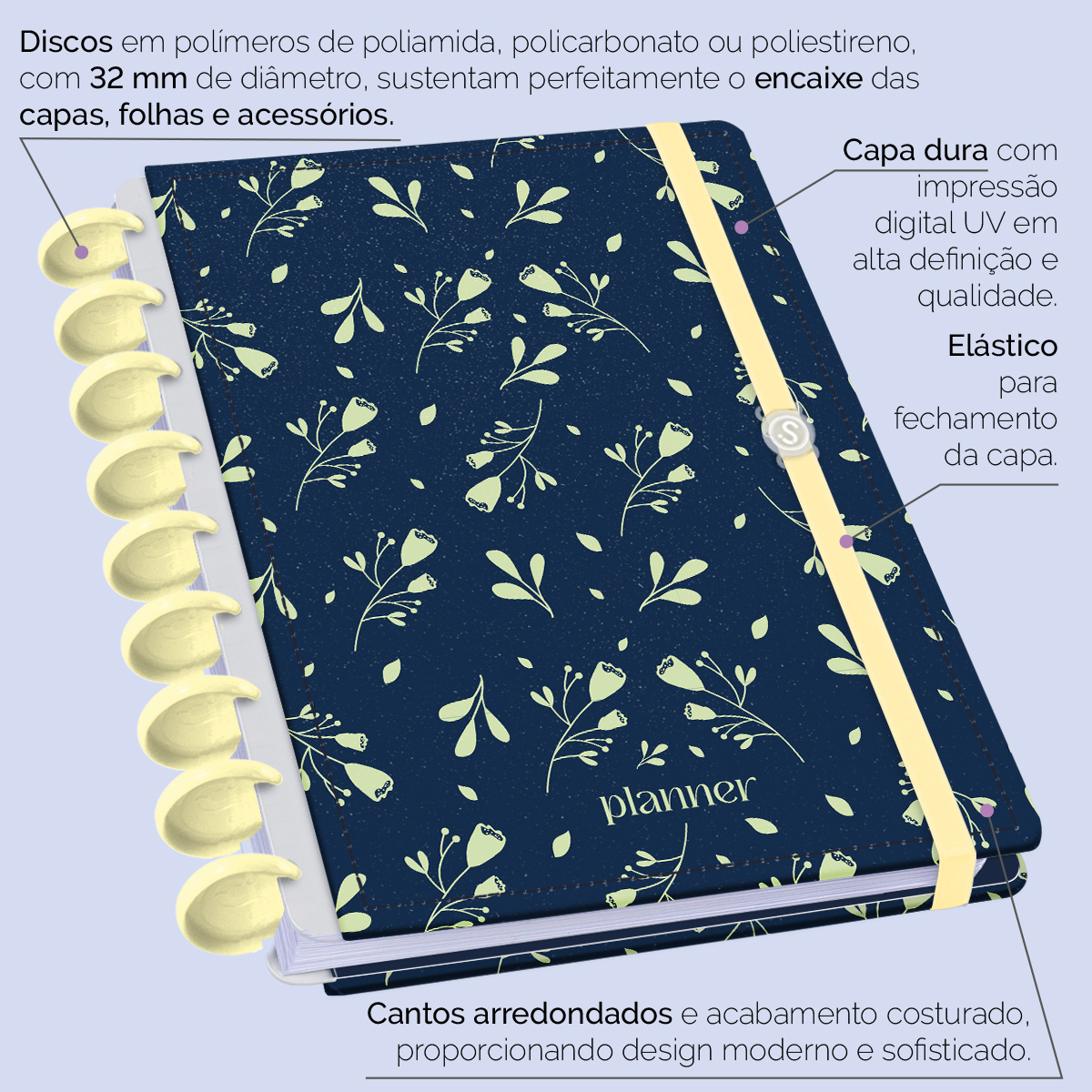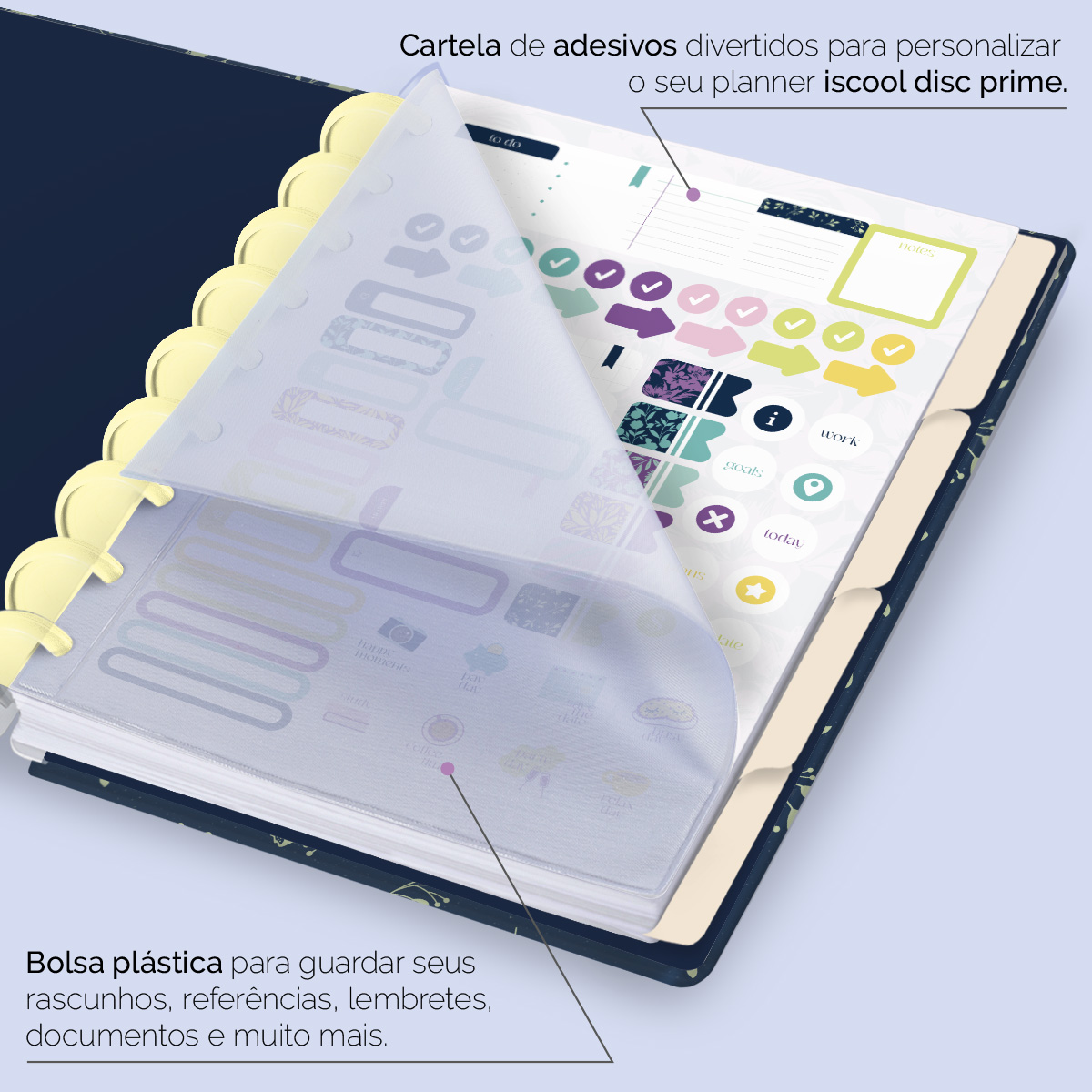 Planner De Disco Iscool Disc Permanente Glamour Color Florzinhas Marinho