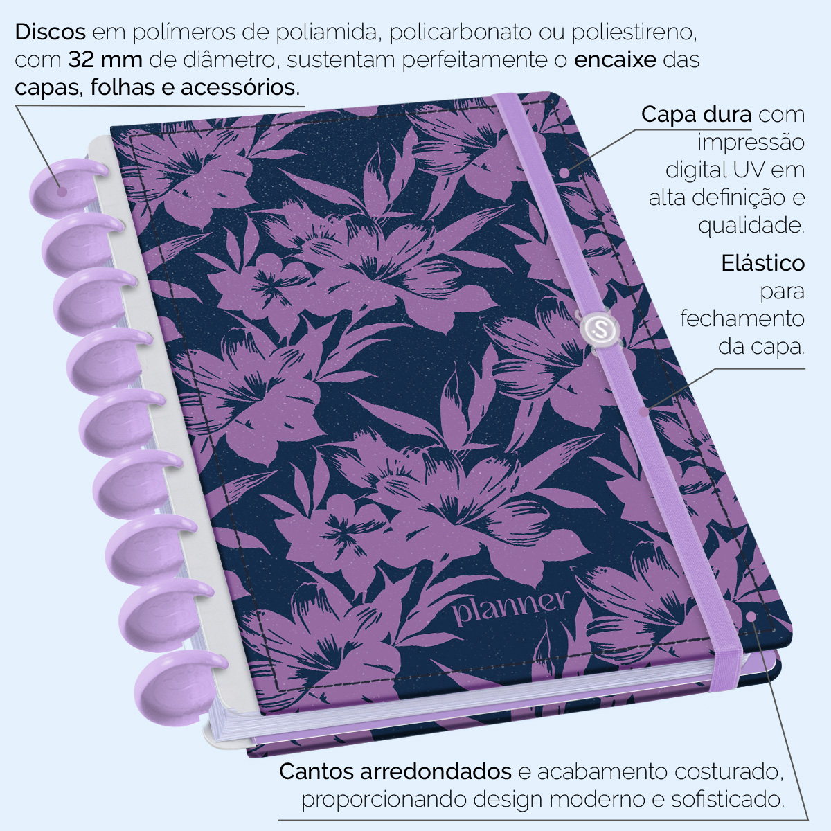 Planner De Disco Iscool Disc Permanente Glamour Color Hibisco Marinho