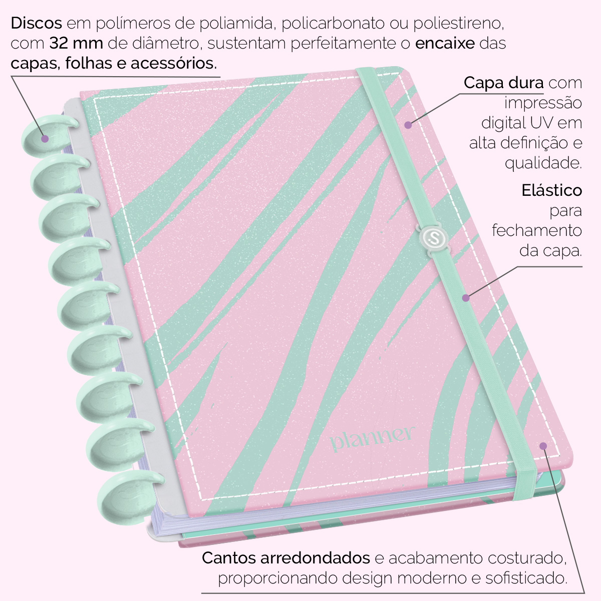 Planner De Disco Iscool Disc Permanente Glamour Color Listras Rosa