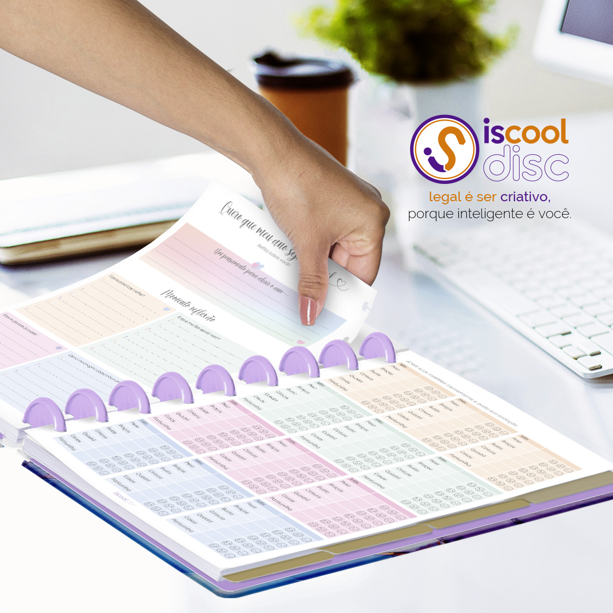 O ISCOOL DISC Planner Permanente foi criado especialmente para ajudar você a alcançar todas as suas metas e objetivos pessoais. É um planner totalmente customizável, no qual os elementos são reposicionáveis. Você pode montá-lo como preferir, deixando sua criatividade fluir livremente.