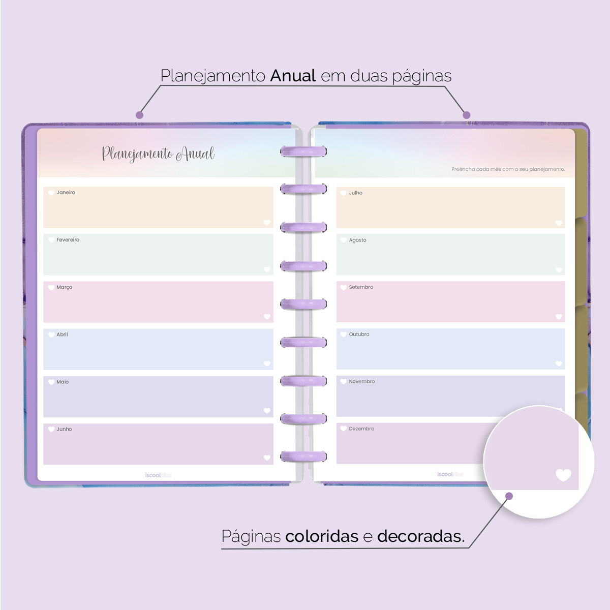 Planner De Disco Iscool Disc Permanente Mármore Lilás