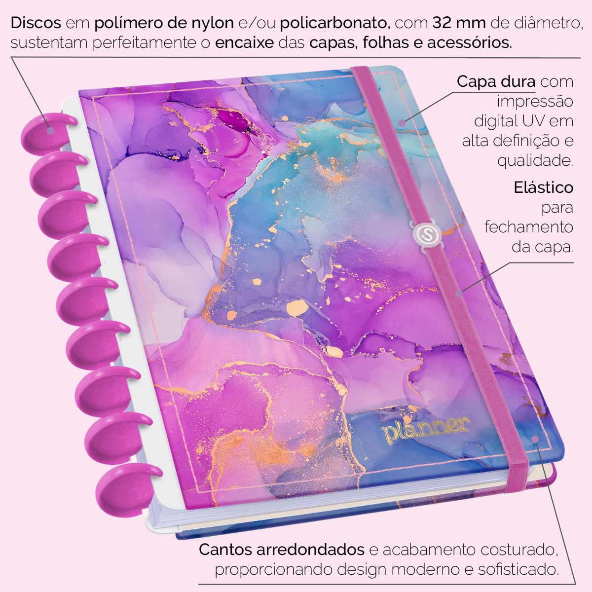 Elástico para fechamento da capa do planner.