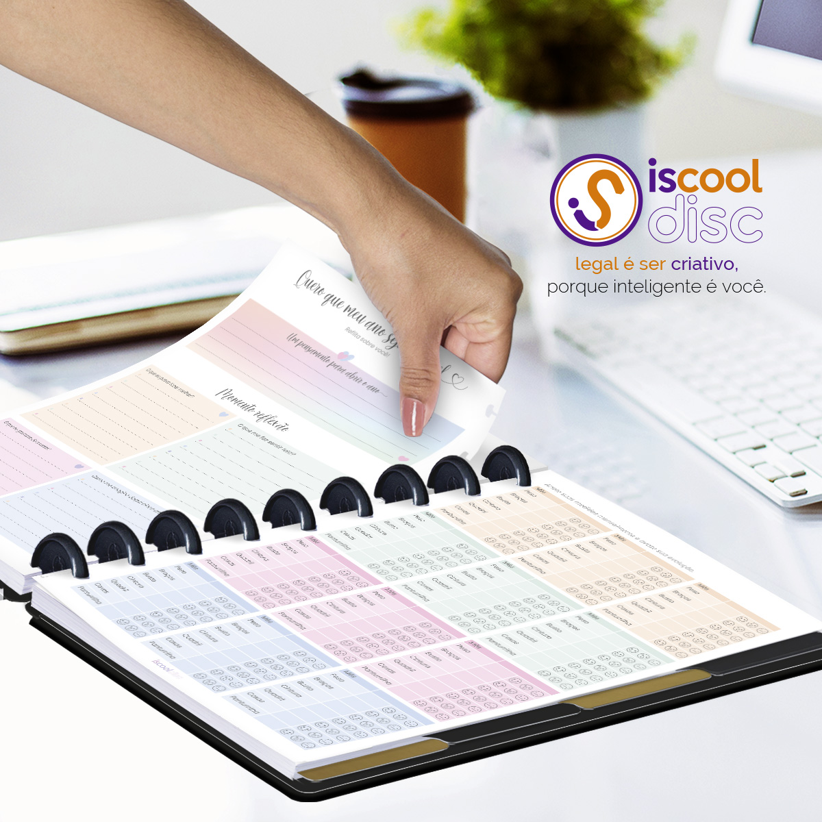 O ISCOOL DISC Planner Permanente foi criado especialmente para ajudar você a alcançar todas as suas metas e objetivos pessoais. É um planner totalmente customizável, no qual os elementos são reposicionáveis. Você pode montá-lo como preferir, deixando sua criatividade fluir livremente.