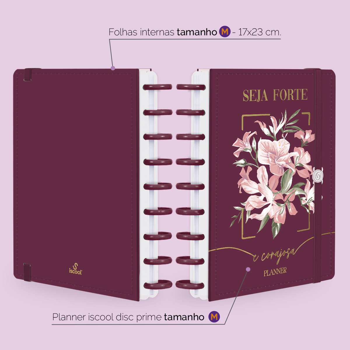 Planner De Disco Iscool Disc Permanente Opulence Seja Forte e Corajosa Marsala
