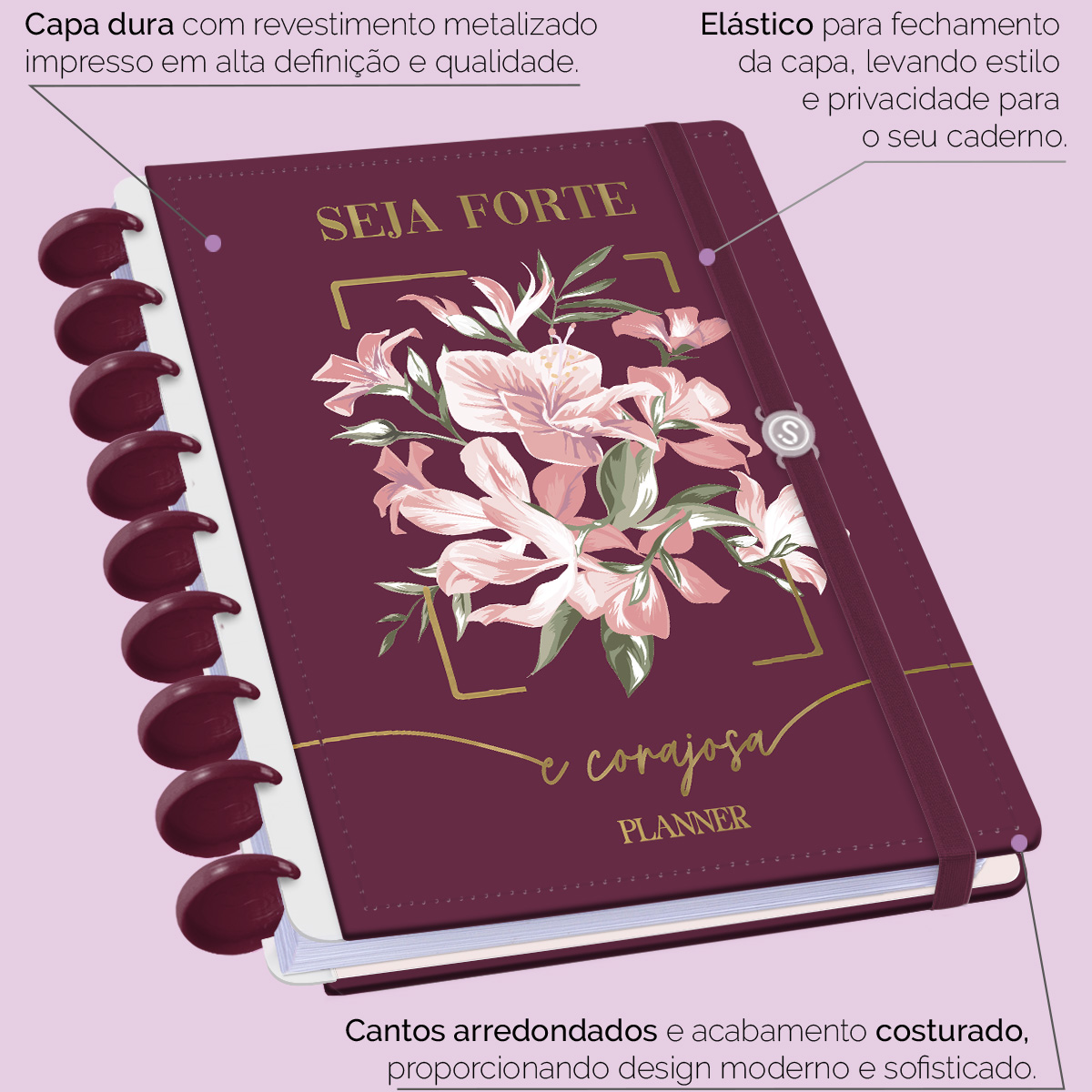 A capa é dura, com impressão digital de alta definição, e acompanha 4 lindas divisórias que você pode colocar em qualquer local do planner, funcionando como o guia perfeito para sua organização.