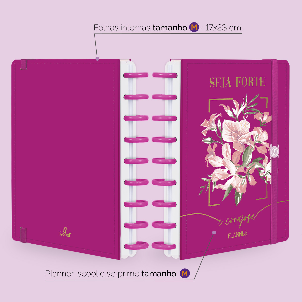 Planner De Disco Iscool Disc Permanente Opulence Seja Forte e Corajosa Pink
