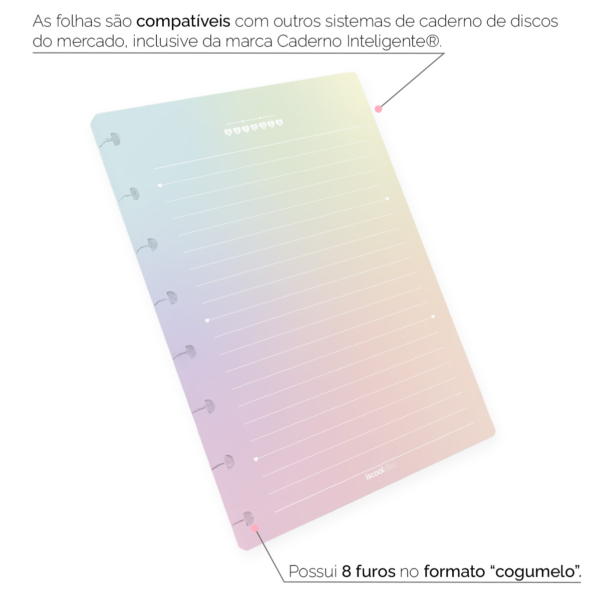 Com nosso refil ISCOOL DISC, você garante novas páginas para fazer suas anotações, rascunhos e desenhos sempre que precisar, deixando seu caderno novinho em folha!