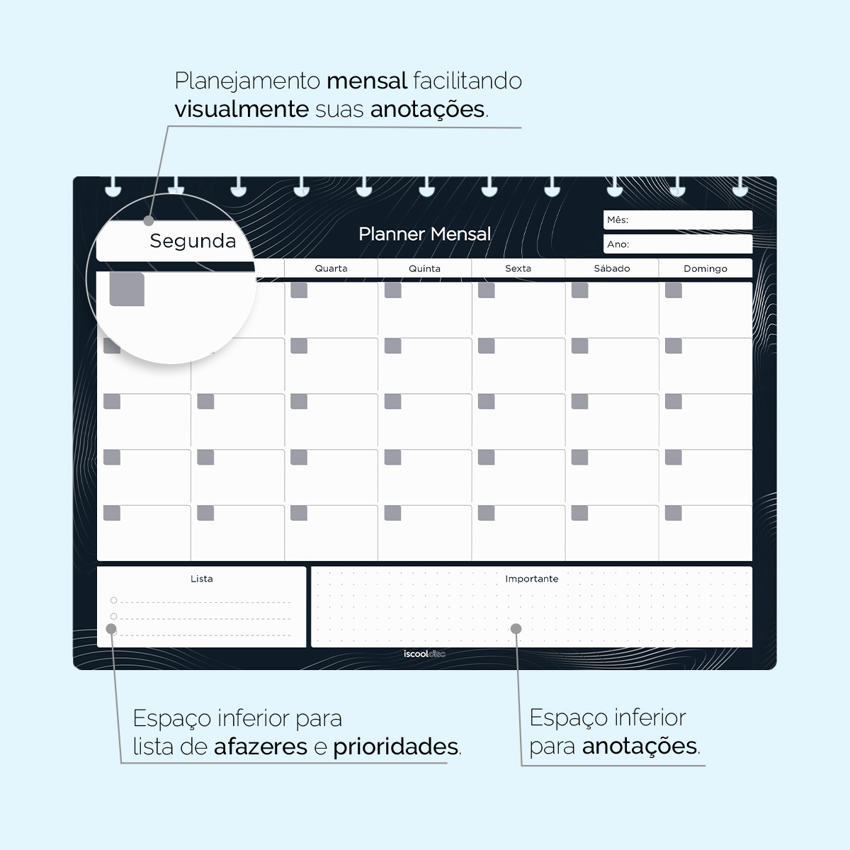 Com nosso refil ISCOOL DISC Planejamento Mensal, você garante novas páginas para utilizar seu planejamento sempre que precisar, deixando-o novinho em folha!