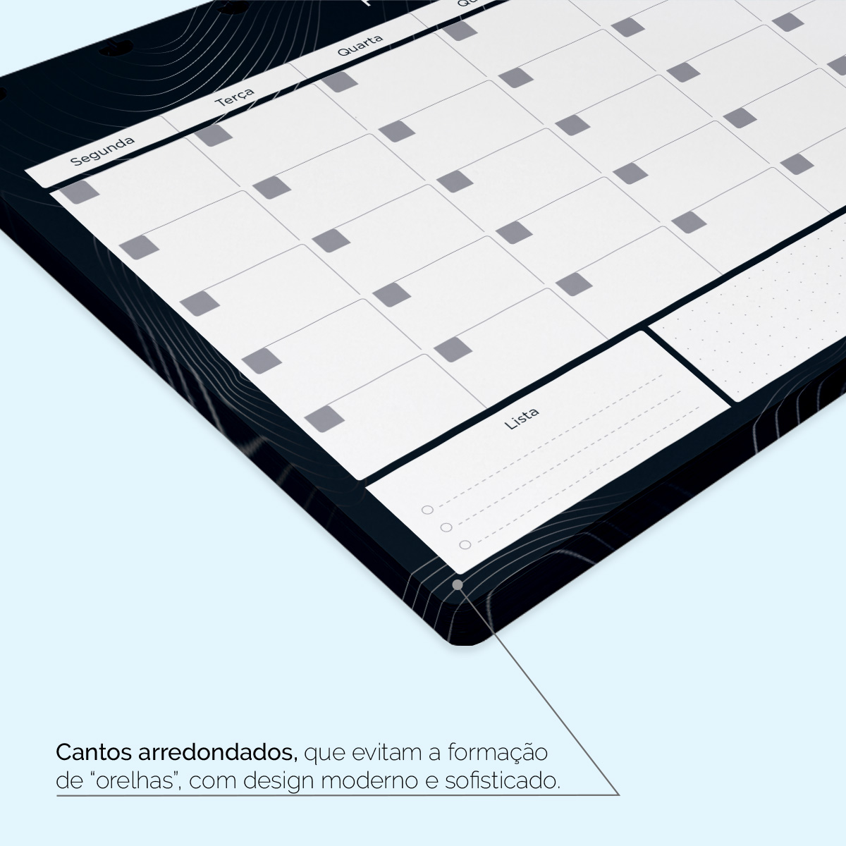 - Quantidade de folhas: 24 folhas, com cantos arredondados.