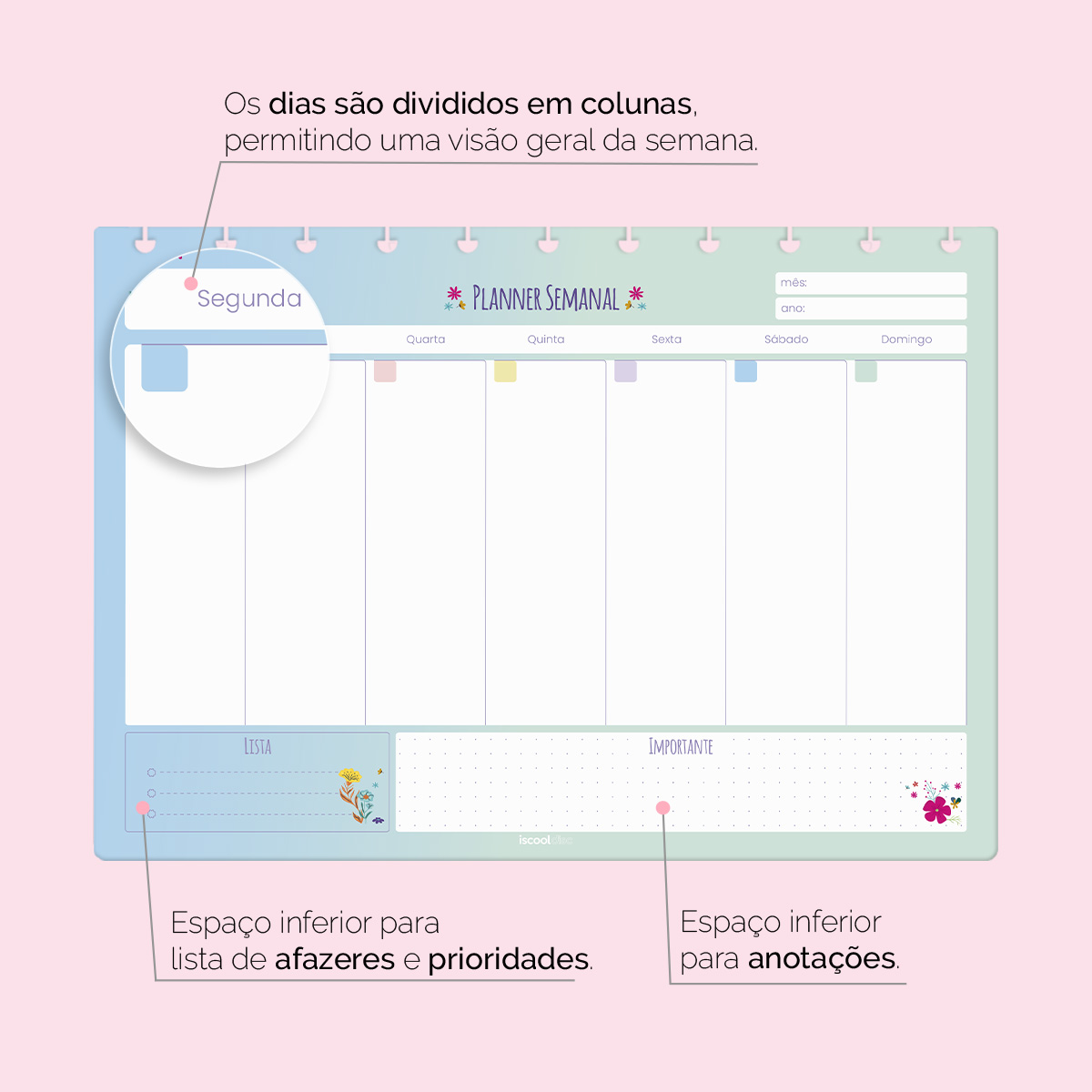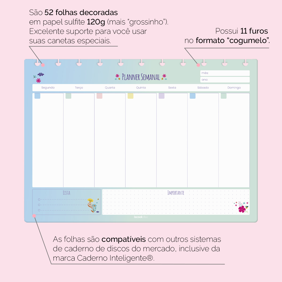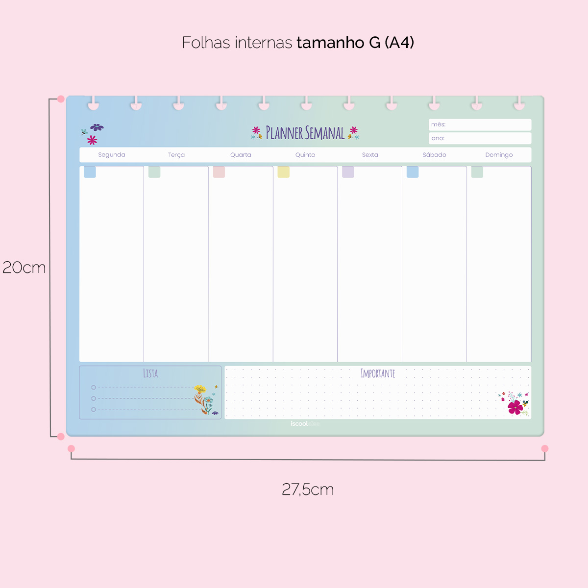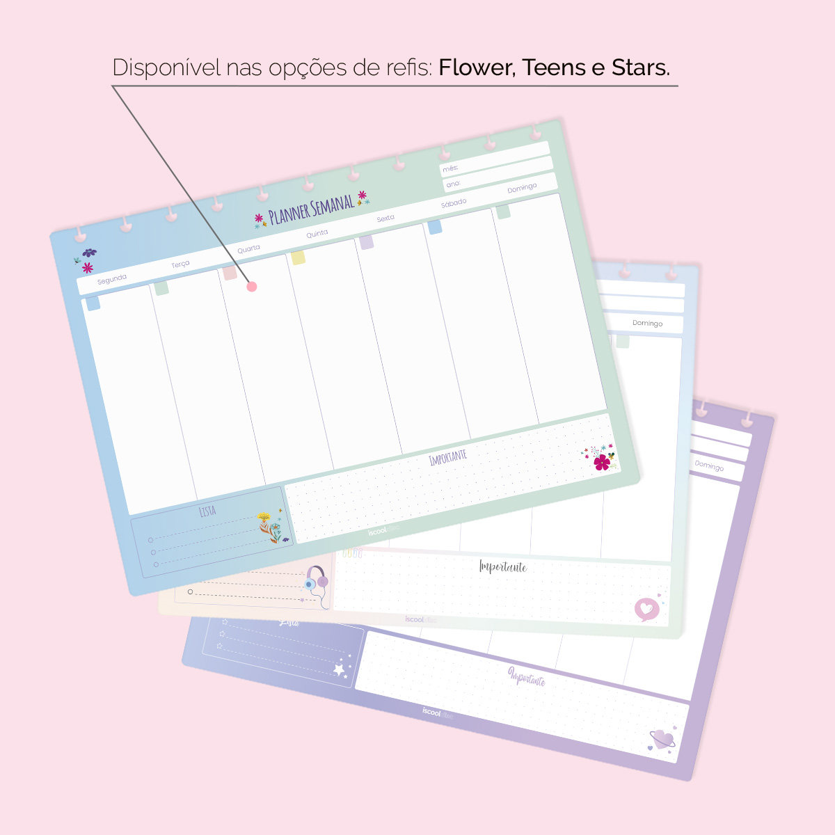 Refil Iscool Disc Planejamento Semanal Flower