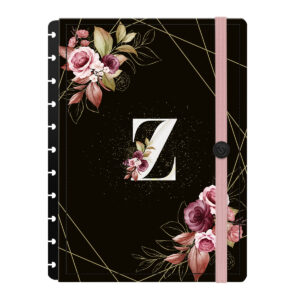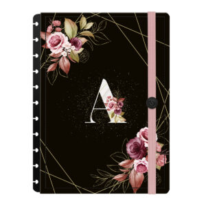 Caderno de DiscoIscool Disc Prime Monograma Floral Preto E Rosa Letra T